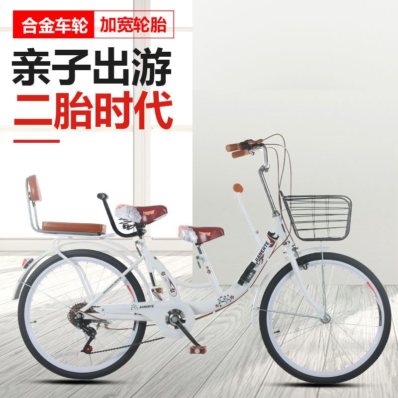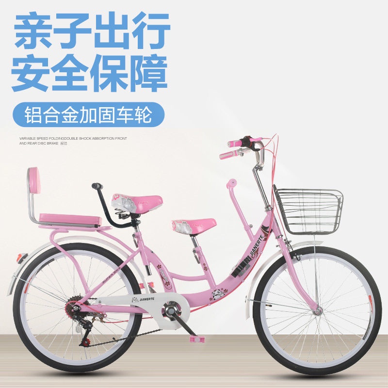(in Stock) Parent-Child Bicycle Female Adult with Kid Children Solid Tire Bicycle 22/24-Inch Adult Pick-up Child Mother and Child Car