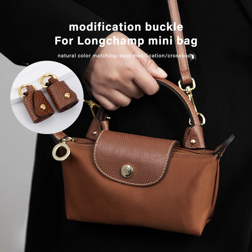 1Set Leather DIY Bag Strap Transformation For Longchamp Mini Tote Bag Shoulder Strap Set Buckle Crossbody Strap Bag Accessories Punch-free