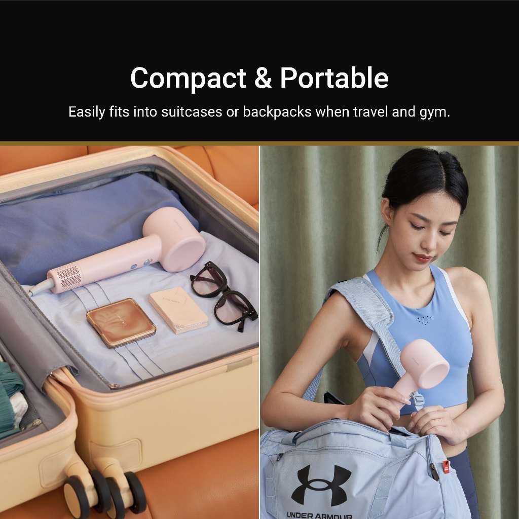 Performance:great Suitability:10/10 Product delivery was fast and well packaged. Hair dries very quickly, even with speed 1 and the sound is manageable. Overall a quality hairdryer that’s affordable compared to other brands, and looks great!