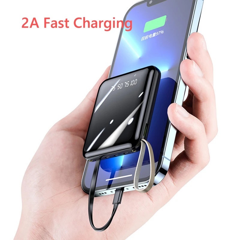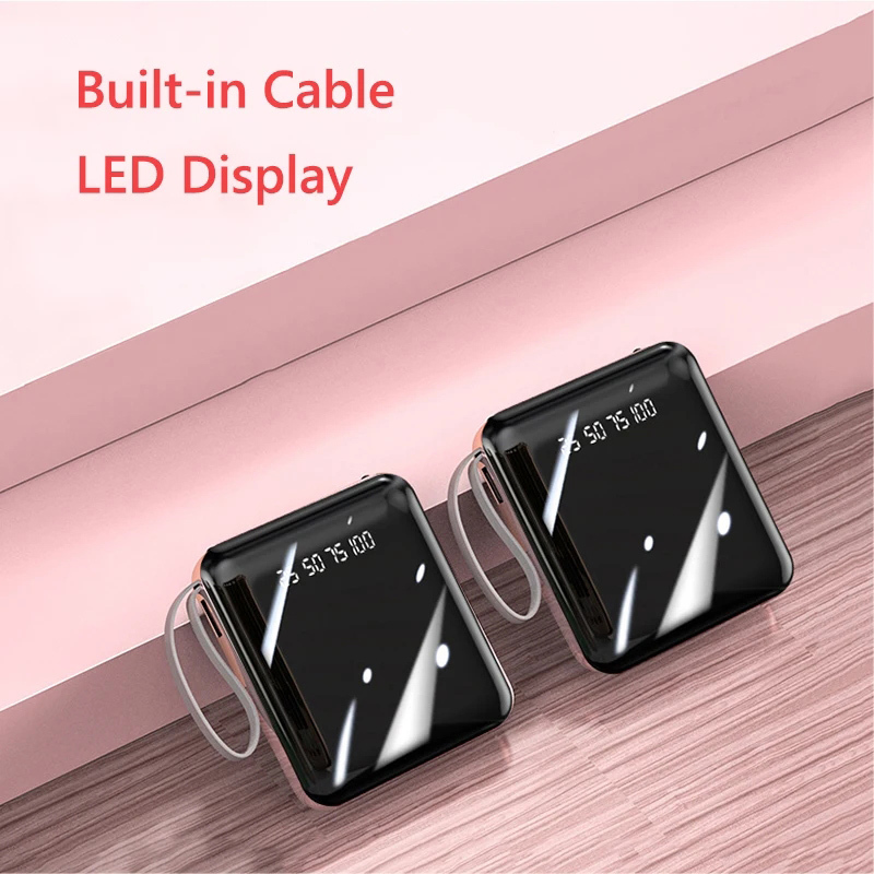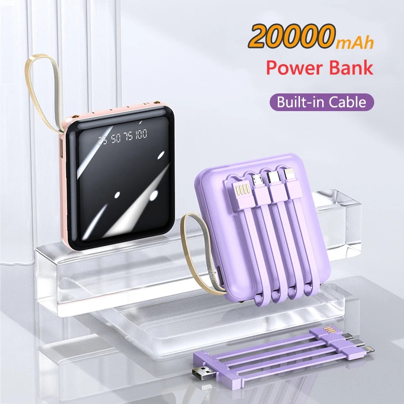 20000mAh Mini Power Bank Built in Cable Portable Powerbank iPhone 15 14 13 12 11 Mini Pro Max Plus Teachers Day Gifts Se