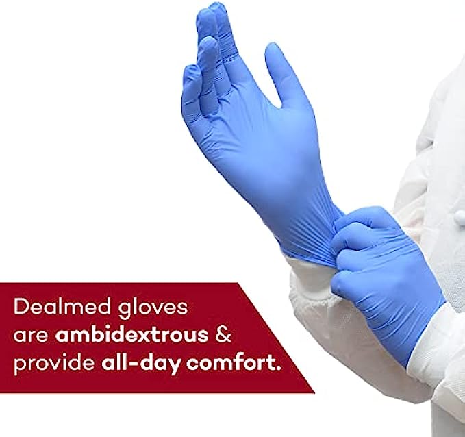• OPTIMAL COMFORT – Dealmed nitrile gloves are designed with a highly elastic fit and beaded cuffs to provide a snug, secure fit when wearing for extended periods of time. Additionally, they offer tactile sensitivity for delicate patient care.