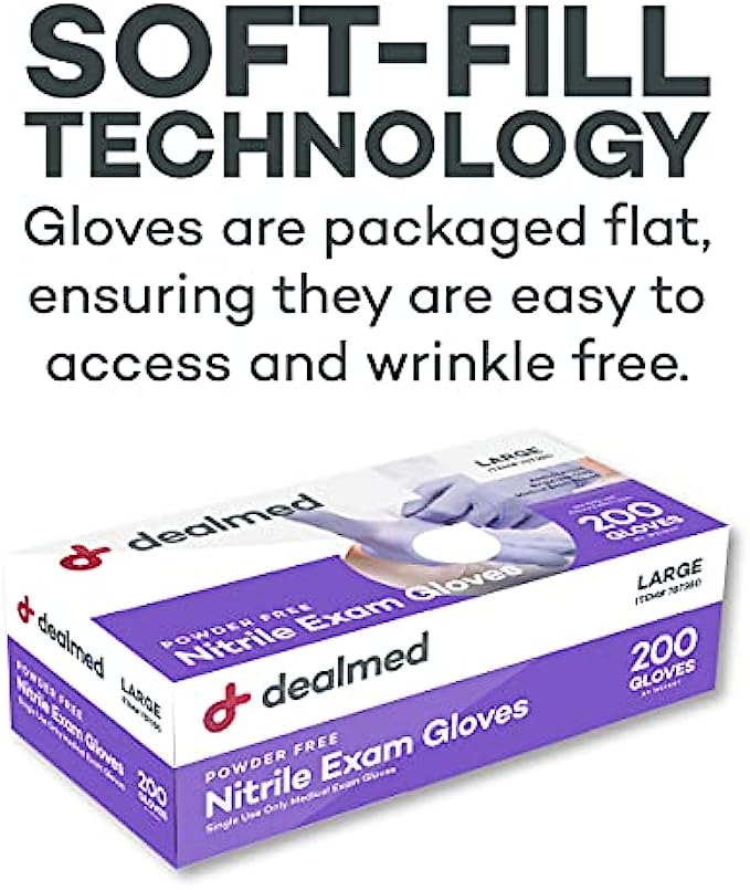 • EFFICIENT PACKAGING – Soft-Fill Technology dispenses the medical examination gloves with unwrinkled ease because they are packaged flat. This allows for more efficient and expedient use when you need to grab a pair of sanitary disposable gloves.
