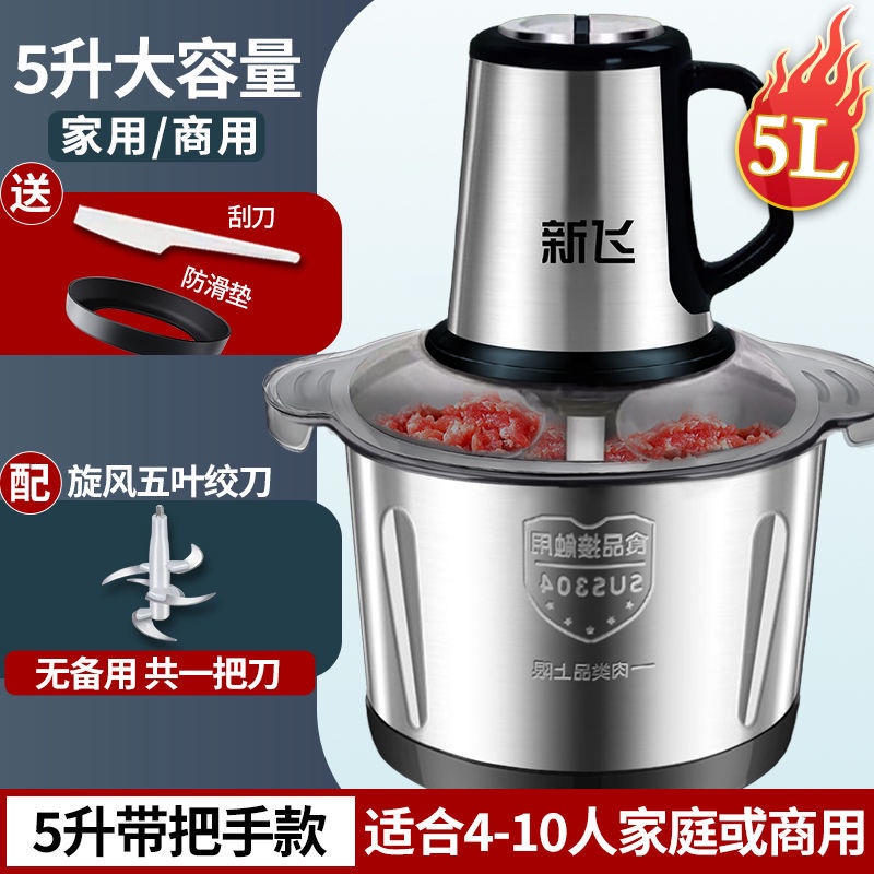 Electric Food Chopper, Meat Grinder Electric, Food Processor Electric 2L 5L 3L Stainless Steel Meat Blender Food Chopper for Meat, Vegetables, Fruits and Nuts with 4 Sharp Blades