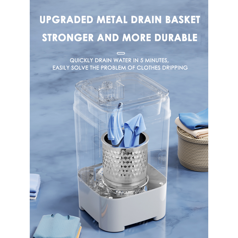 HODEKT Family Mini Washing Machine, Mesin Basuh Large Capacity, Washing Weight, 7KG Blue Light Sterilization Function, 300W Multi-function Control, Semi-automatic Timing Function, No Jitter, No Noise,
