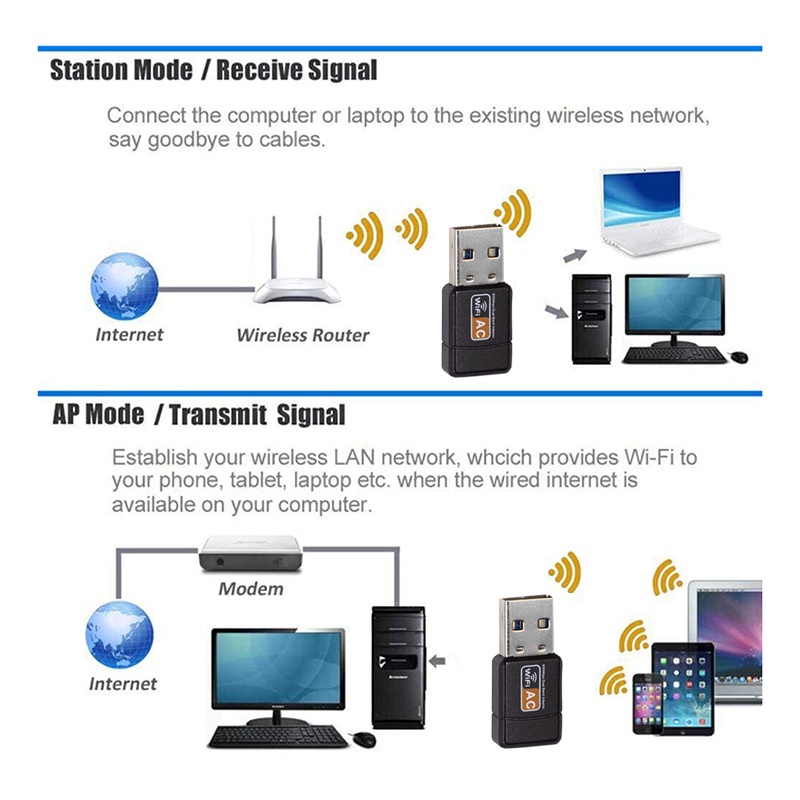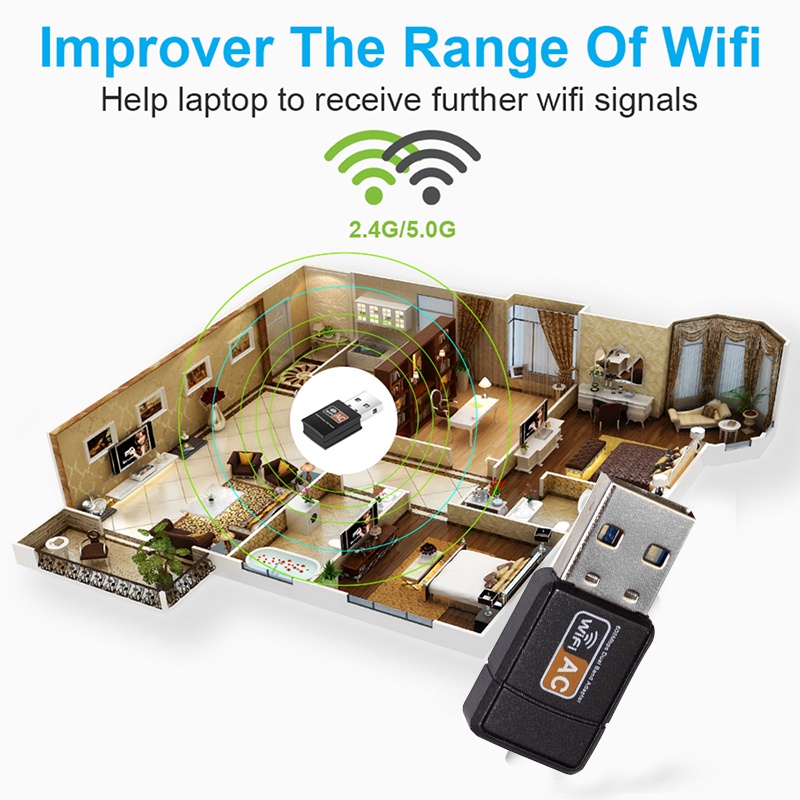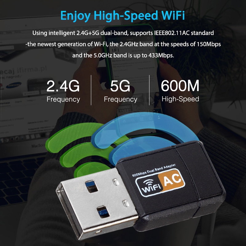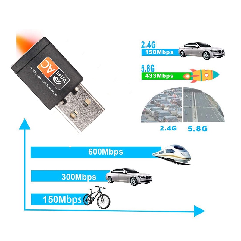 Roni USB Wireless Wifi Adapter 600Mbps Wifi Dongle Dual Band 2.4G / 5G Hz 802.11 AC SG SELLER(In stock)