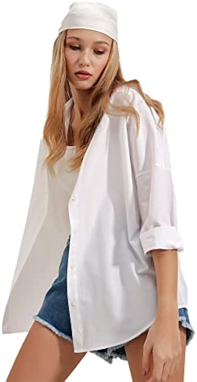• We recommend you to buy your normal size. You will love these long sleeve stylish button down shirts. Loose fit design, oversized look, easy to roll up sleeves. Plus sizes are available