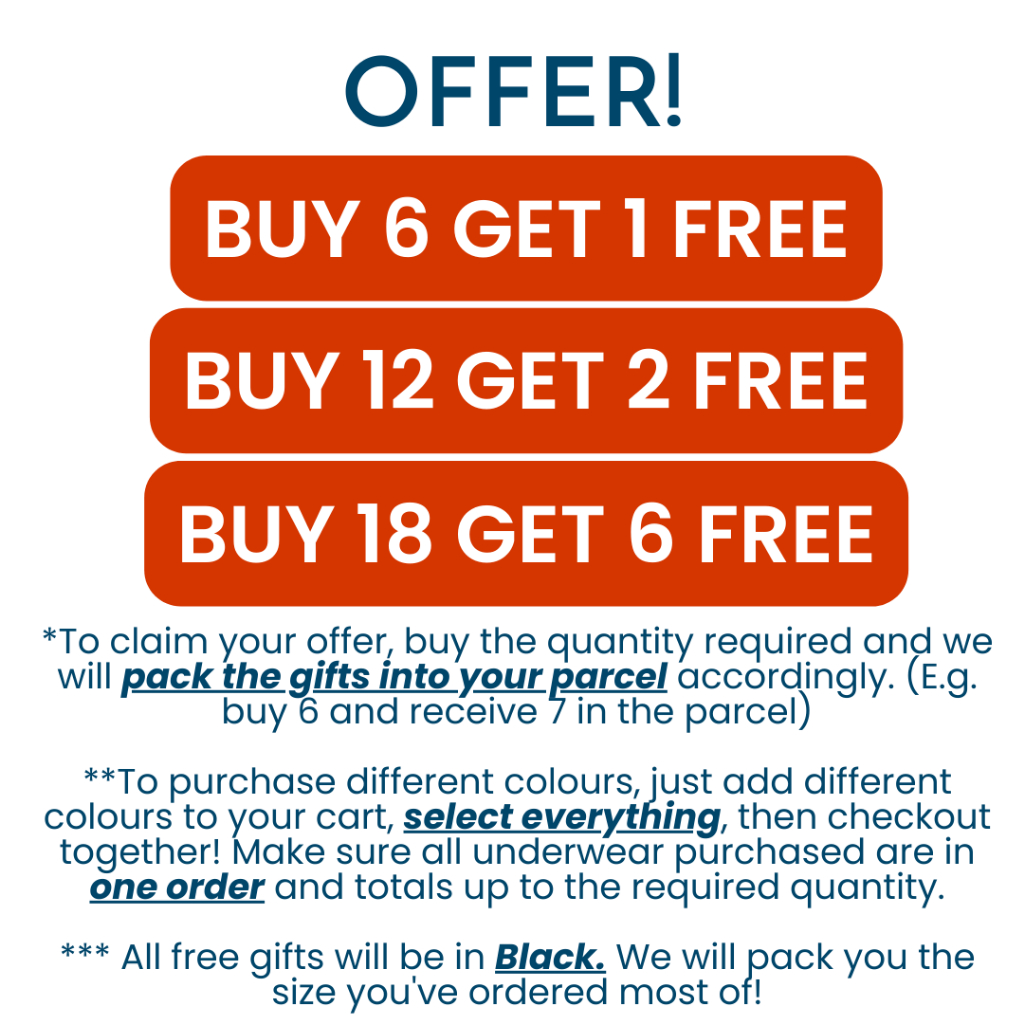 Colour:good to have more light colours available Material Quality:soft and comfortable Items received earlier than expected and in good condition. Good offer for ‘Buy 6 Free 1’. Feeling great and comfortable when putting on. Thank you Seller & Shopee for this smooth transaction ???