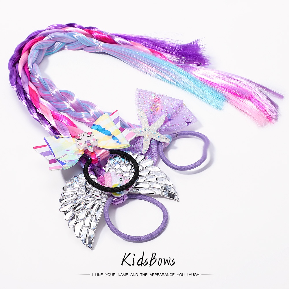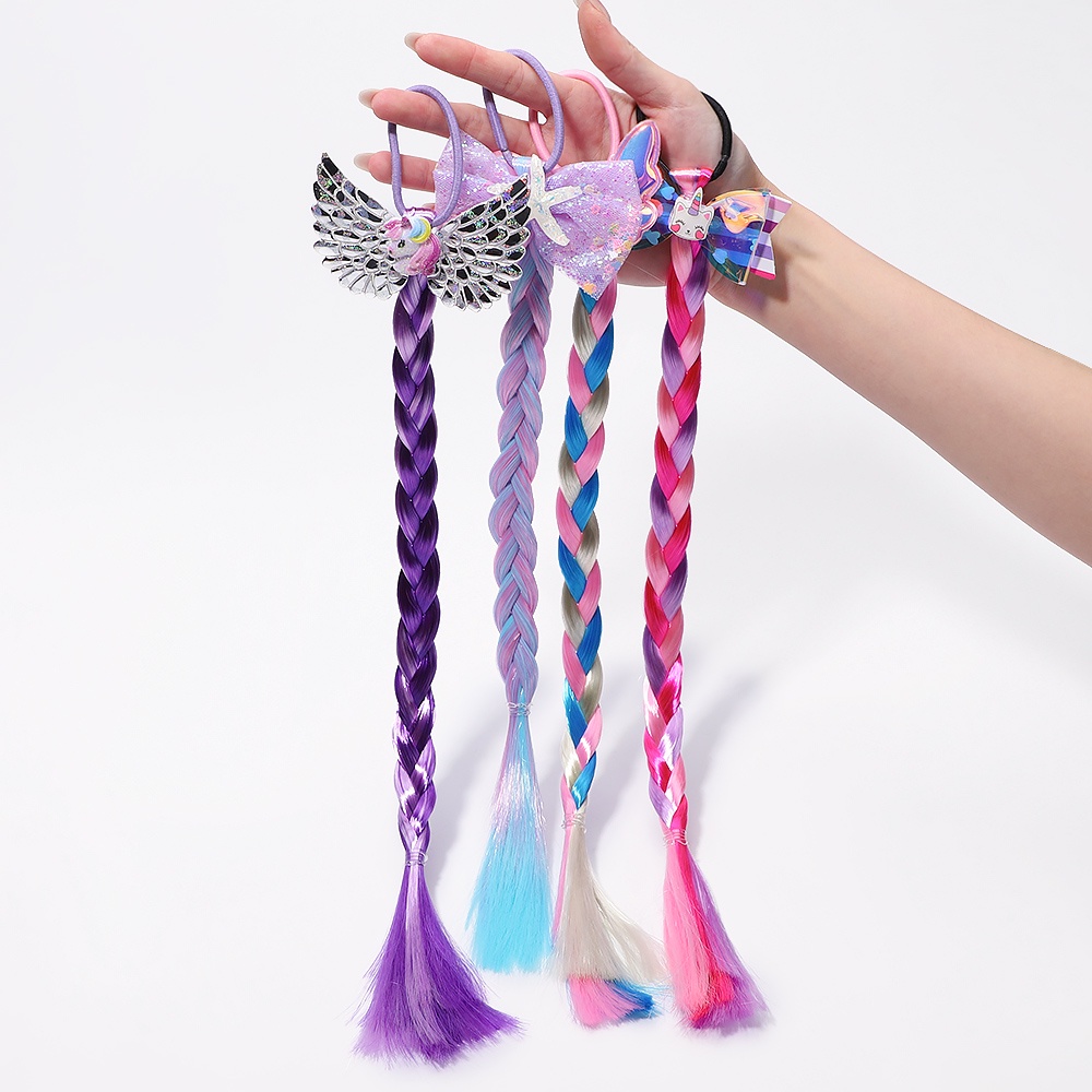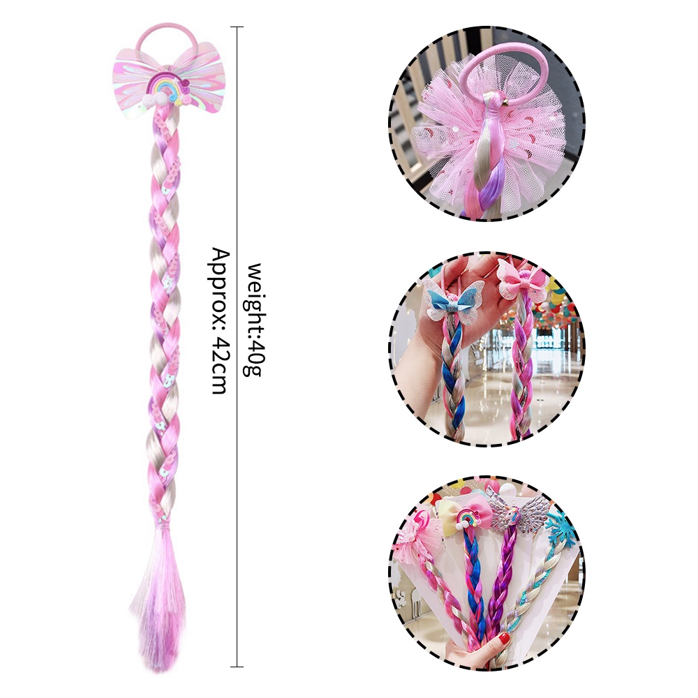 Colourful Bow Braid Hair for Girls DIY Hairstyle Headband Kids Ponytail Holder Rubber Bands Princess Hair Accessories