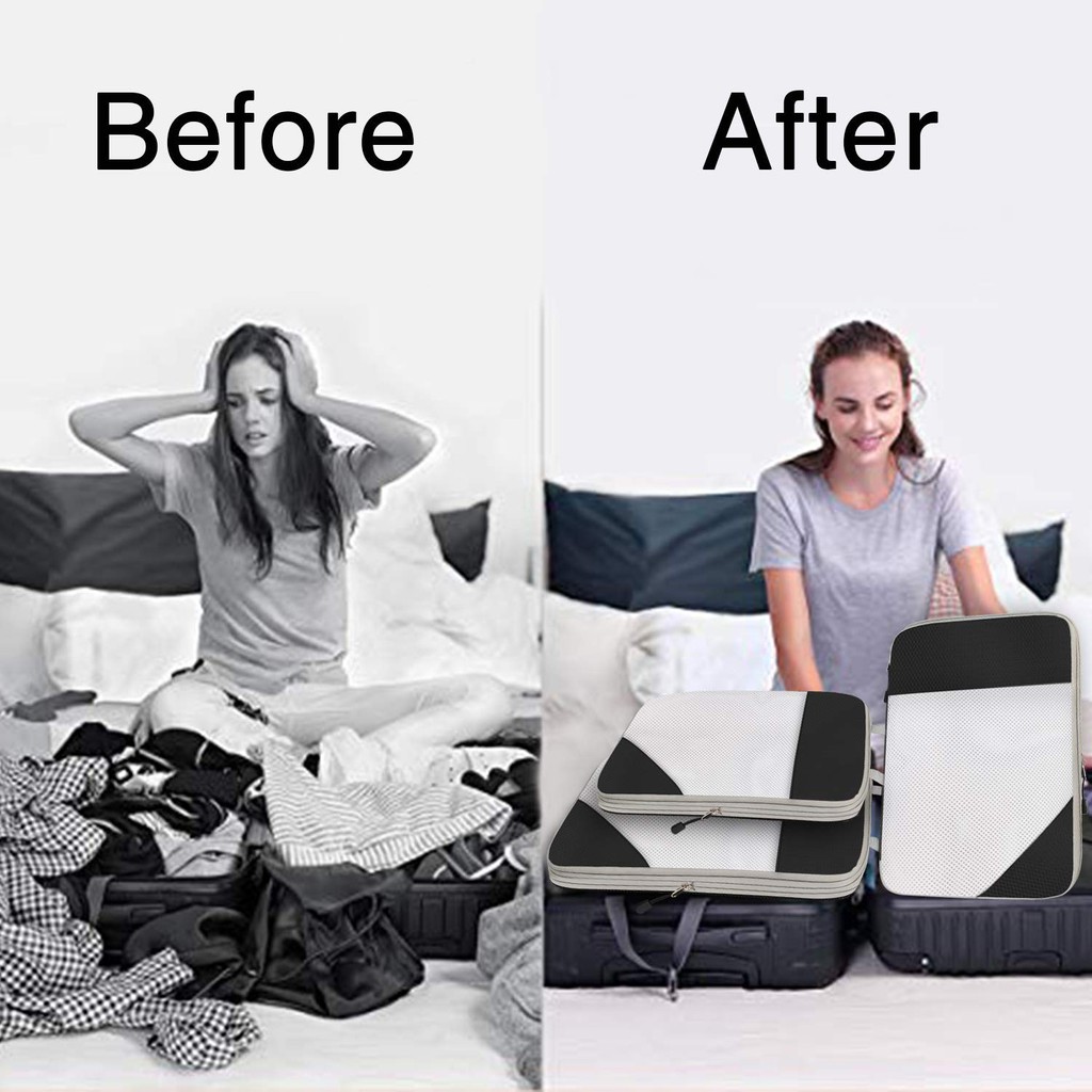 Quality:Good material Suitability:functional and useful Deliver was fast. Received items in good condition and within 2days. Nice colour. Zipper solid and smooth. Its helpful to organise my luggage...but not sure how much compression will help.