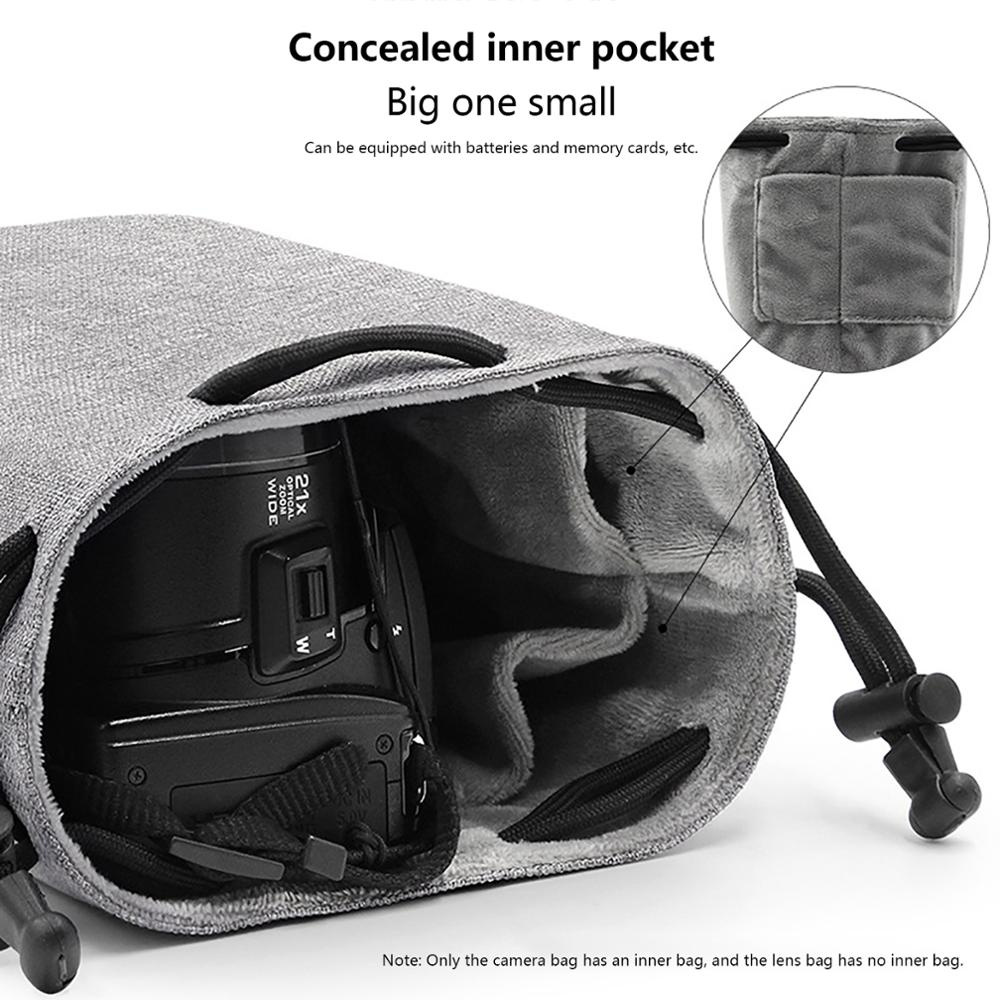 Best Feature(s):soft microfiber interior, thick material Value For Money:yes Product Quality:good The microfiber material on the inside will help you not get scratches on the camera. It has small compartments for batteries and the like. I can see that it will fit my Sony A5100 perfect if it had a kit lens/medium lens (pictured here is a medium sized zoom lens). Any larger and you will have to get the larger sized bags. Worth the price paid!