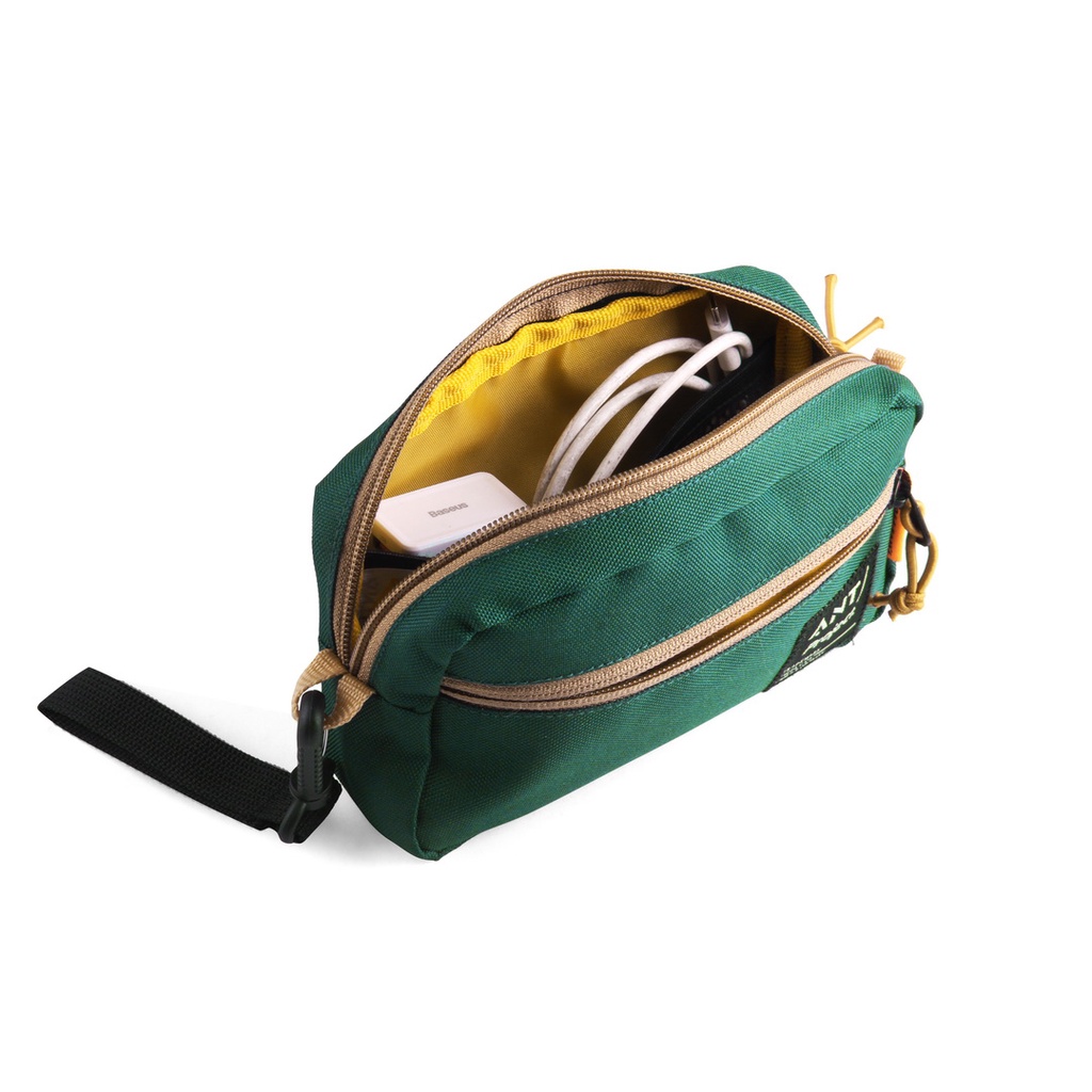 Material Quality:amazing material Colour:nice green Material is of good quality, should be able to use for a long time. Very good for keeping powerbank, wires and coins or stationaries.