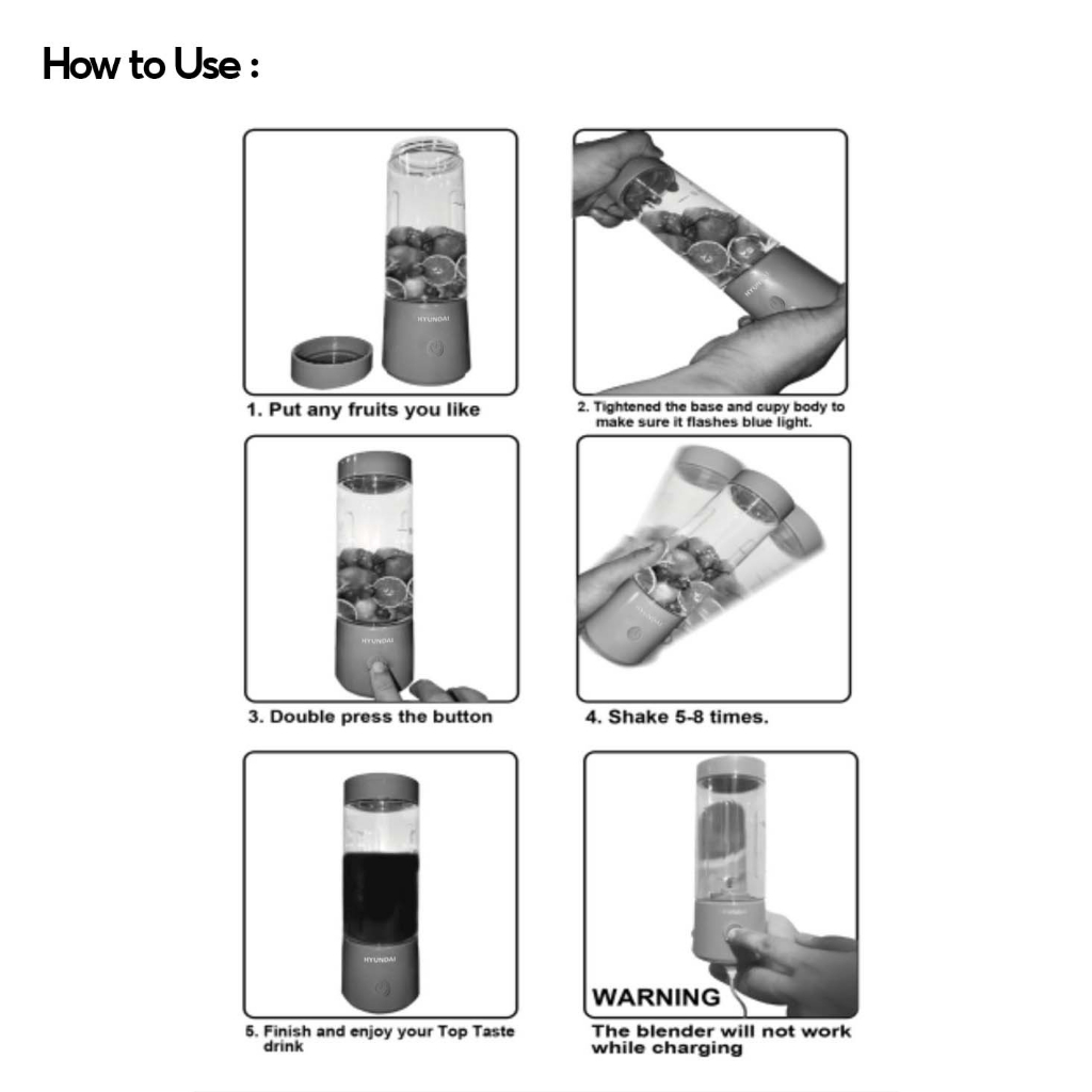 Best Feature(s):Small & handy Value For Money:Quite right Performance:Good Delivered within 3 days. Blender is good enough to make a glass of fruit/veg juice. Must charged the battery for about 3 hours. There is a red light and then it turns blue when fully charged. Just blended a small bittergourd with water. Easy to clean up after use. Hope it last. My 2nd purchase. Good buy ???