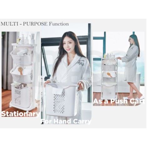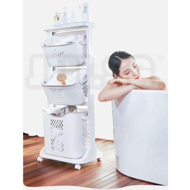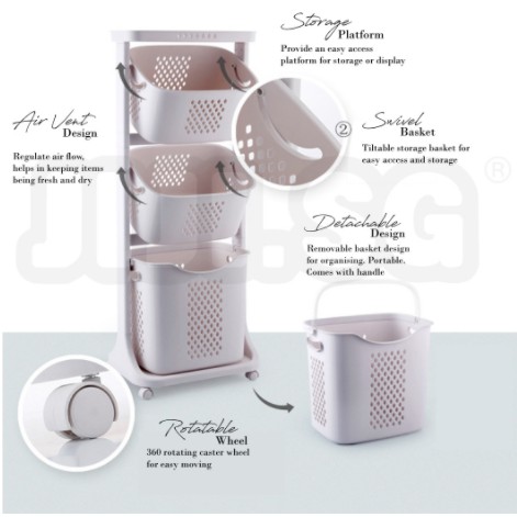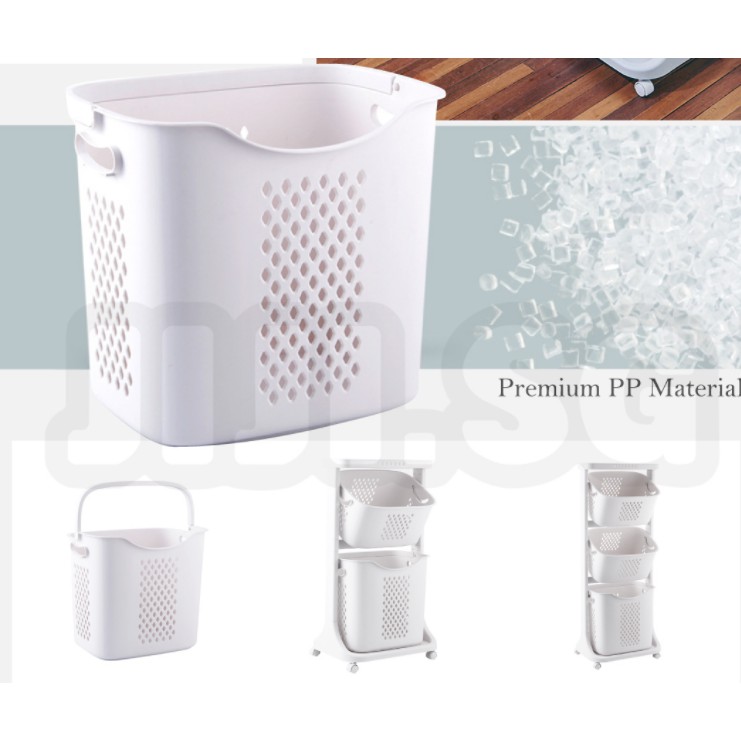 Quality:durable plastic, nice colour Suitability:good for service yard area Performance:ample storage I bought two of the laundry storages to organize my service yard. It was perfect and I can put all laundry related items in one place. It was quite easy to assemble. There are wheels on the bottom but I don't think I need to move it around. The bottom basket is removable. ???