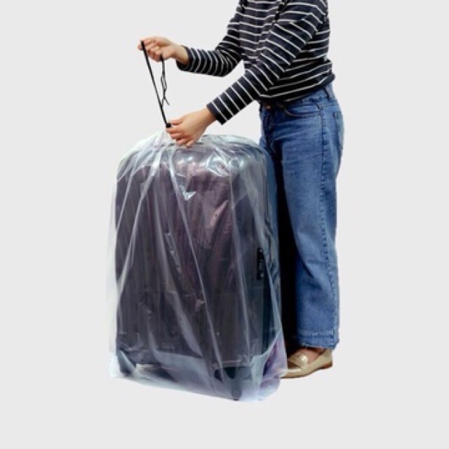 Material Quality:thick with draw string Colour:transparent Good solid thick plastic to cover the luggage when not in use. With draw string and dust free. Thanks