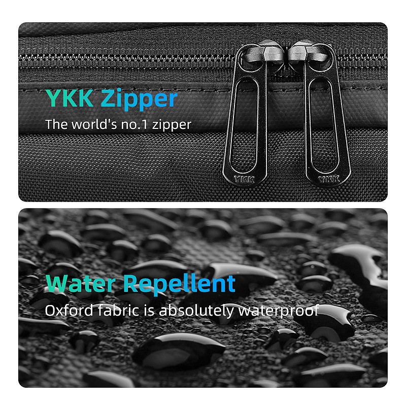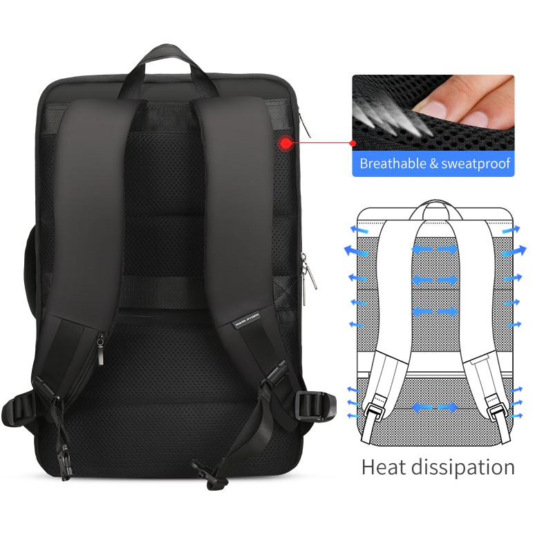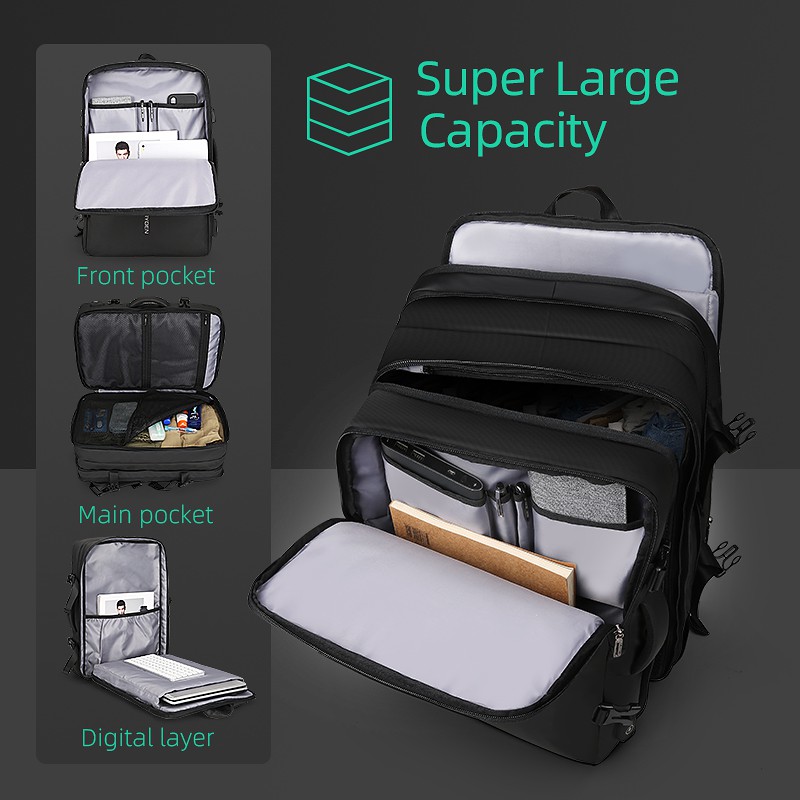 Material Quality:Good. Looks durable. Colour:Black Have been a supportor for Mark Ryden bags. The material feels durable and the seams are well sewn. Many compartments in this travel bag. The excess material in the extension is well hidden when not in use. Zippers are smooth & feels sturdy. The USB charging wire is neatly hidden. Overall a good buy.