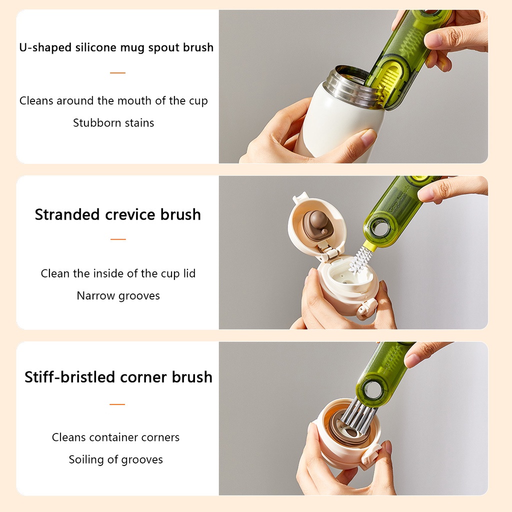 Performance:good Suitability:for cleaning the nook and crannies of water bottles, scrubbing around the tap etc Quality:good It is a clever idea because it is 3 tools in one and compactly designed. I also like that the blue matches my kitchen cabinets.