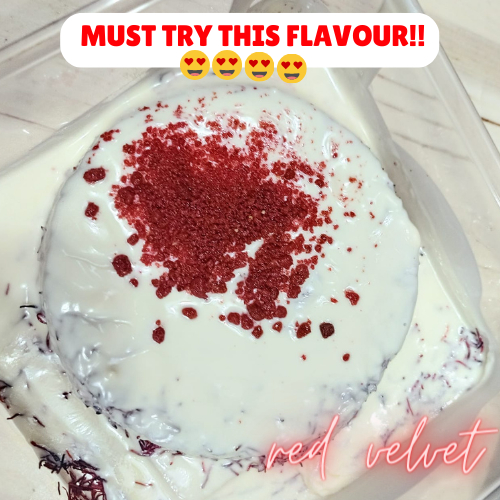 So sedap! Been wanting to try this but queues at events always so long ? The pistachio is perfect, not too sweet. Red velvet is very sweet but still yummy!! The delivery timing is 1800-2130 and received mine at 1840 ?? Generous amount of sauce as well!
