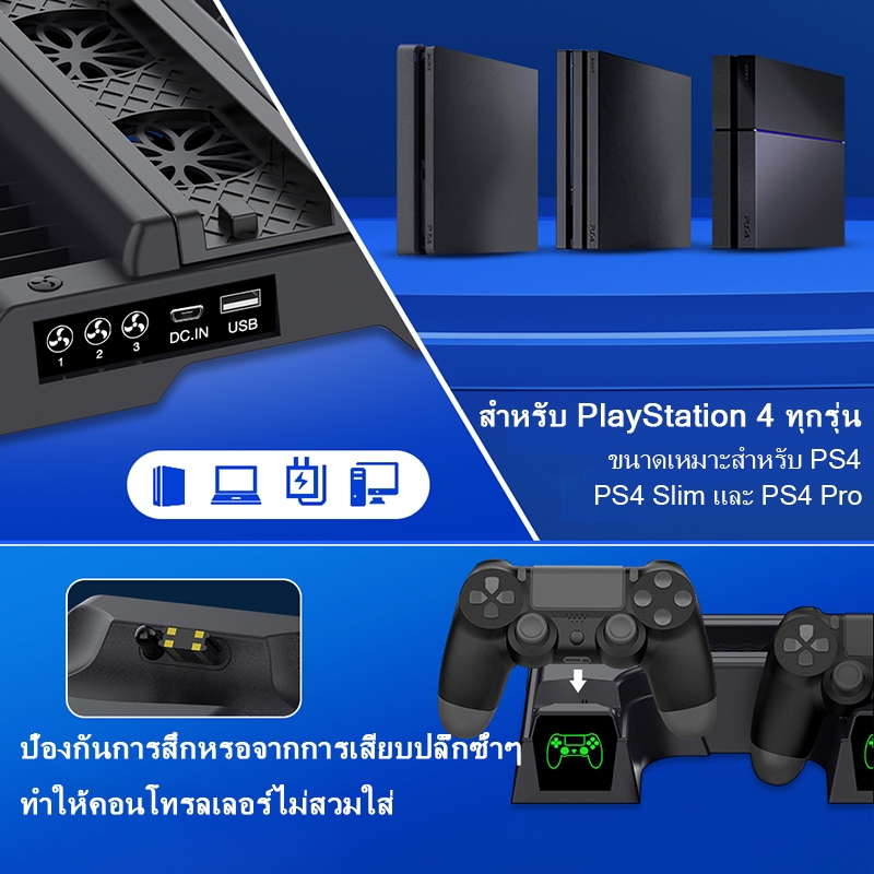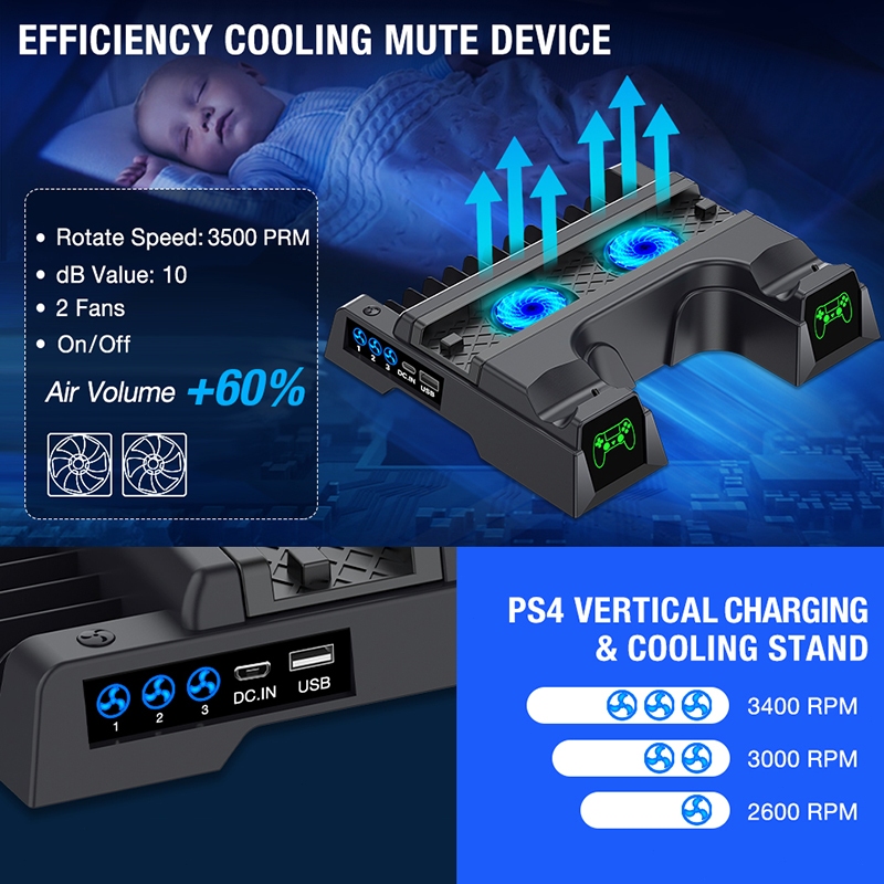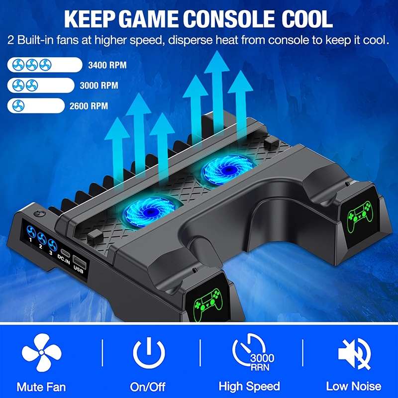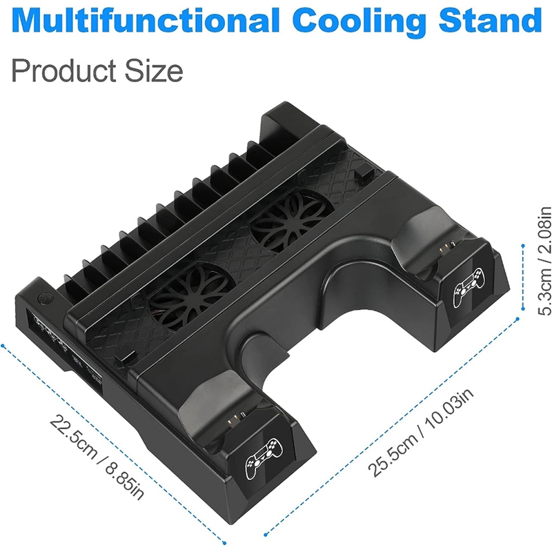 Product Quality:Excellent Best Feature(s):Saves space Value For Money:Yes The PS4 Dual Charger LED Vertical Cooling Stand is a must-have for PS4 owners. It efficiently charges two controllers simultaneously and keeps your console cool with its built-in fan. The LED indicators are convenient, and the vertical design saves space. Perfect for PS4, PS4 Pro, and PS4 Slim models.