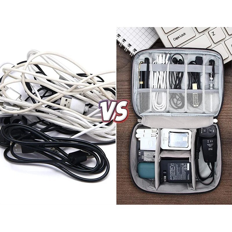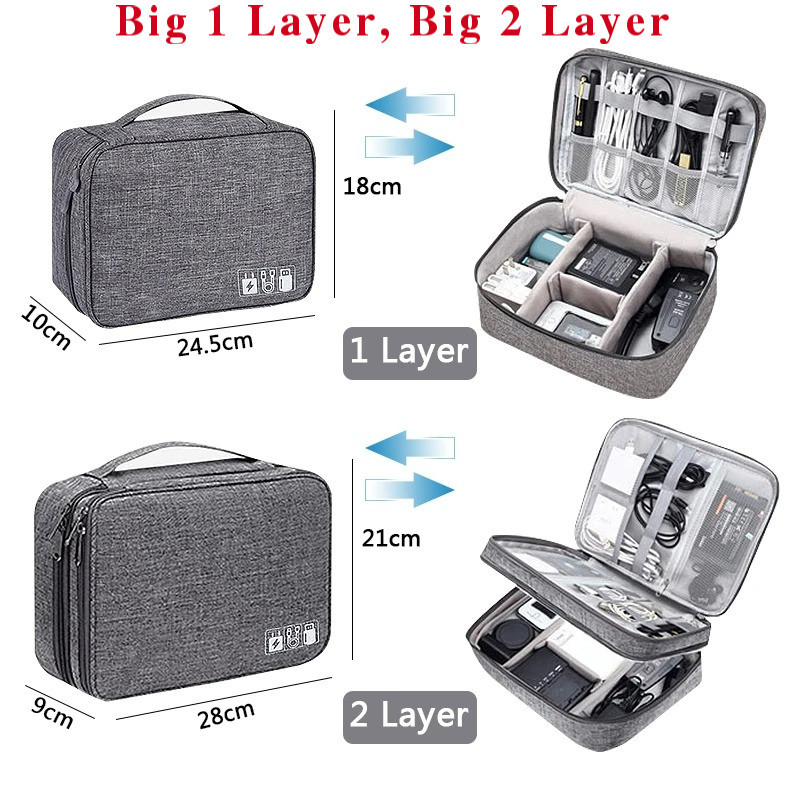Colour:1 Grey & 1 Red Material Quality:Good Bought a light grey and a red cable storage bag to store the various cables, plugs, battery bank, travel adapters etc. Comes with many compartments and elastic bands to hold multiple items. A very convenient bag to keep the various items and can be used at home and for travel. Satisfied with the purchase.