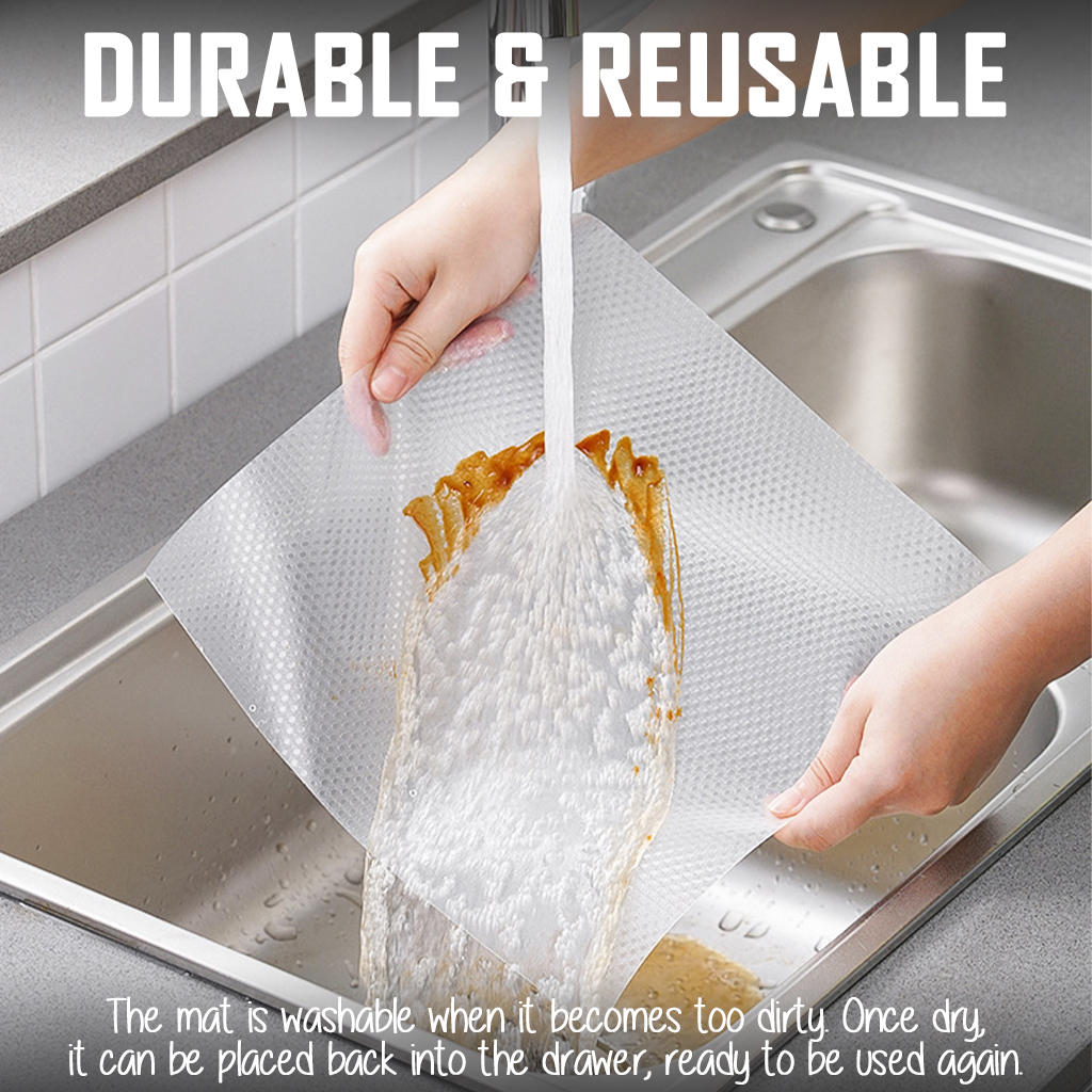 Quality:Good Suitability:Good Performance:Good Received product within 1 week, consider fast for oversea shipment. Tried on my new cabinet, fit well and easy tocut according to the size of the drawers. Thanks seller.