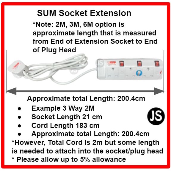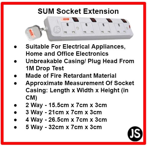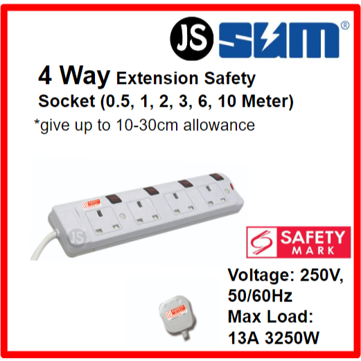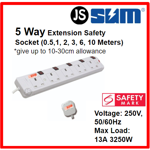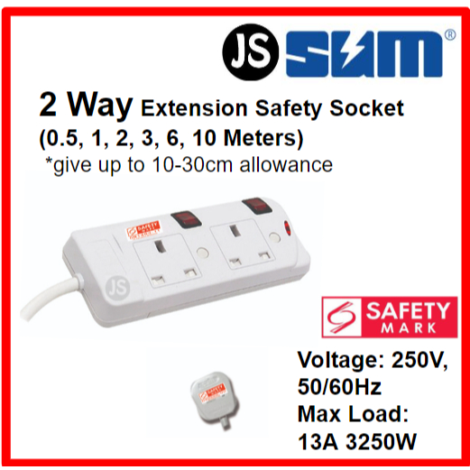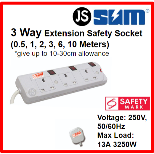 Ordered 3sets of 10m 5way extension cords. The switches are easy to press on/off. Plugs are easy to insert/remove from the sockets. And the sockets also have a special feature allowing 2pin plugs to be easily inserted without need to push in the 3rd pinhole in the socket. Price is good too compared to outside. Highly recommended.